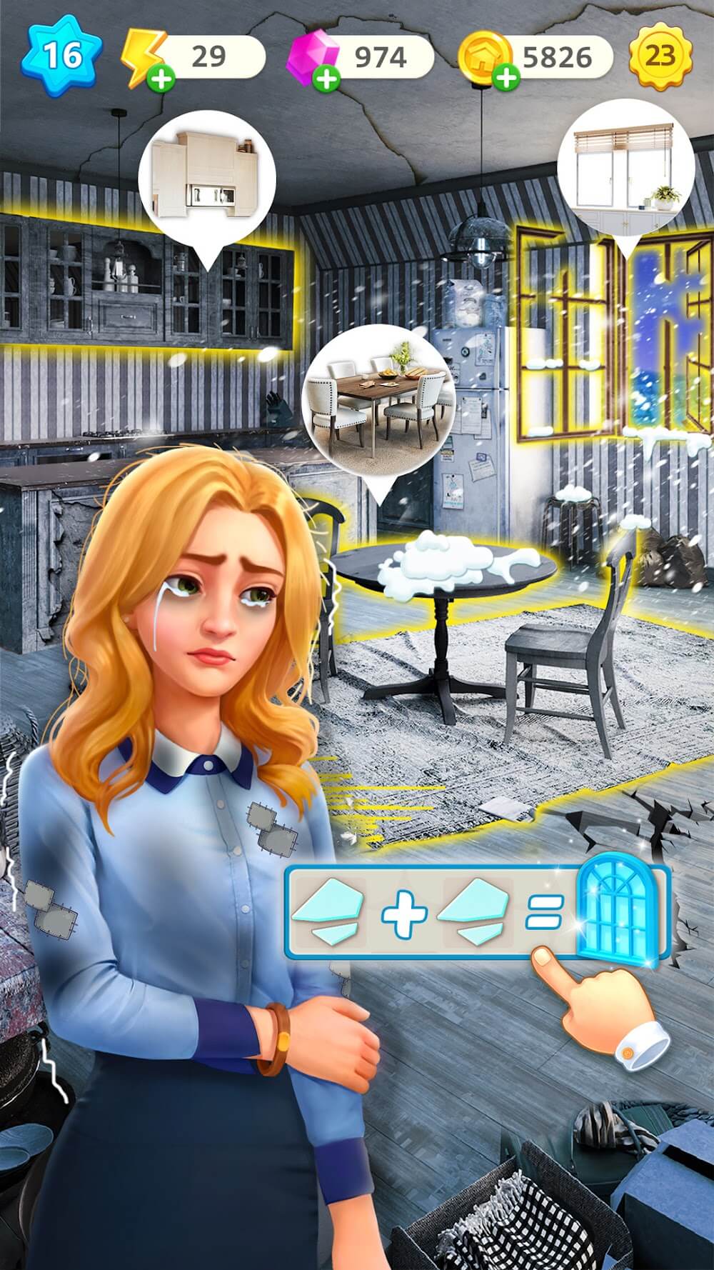 Happy Merge Home Premium s a fire, power outages, leaks, etc. This adds to the challenge of the player’s ability to handle the situation and repair the house. As a result, you gain more experience and can handle situations more quickly. In addition, the game provides you with a collection of home-related items. It provides players many options for decorating the interior and repairing broken areas.COMPLETE ALL ASSIGNED WORKYou face a wide range of challenges and difficulties. As a result, players strive to improve their skills in repairing and deco