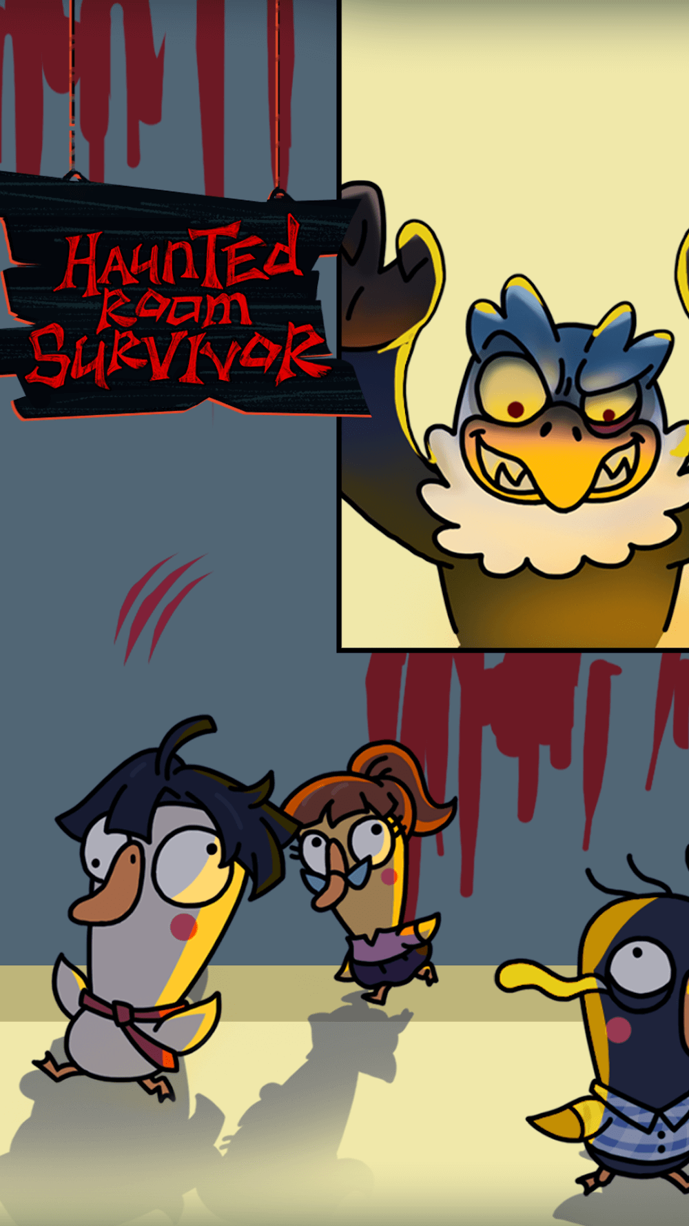 Haunted Room Survivor apk-en ld. If the room is already occupied, you should move on to the following available rooms.FIND A WAY TO DEFEND THE ROOMThe duck boss will try to break in as soon as you enter the room. Use your wisdom! Spend your gold to buy better guns and weapons to fight the duck bosses. If the boss has damaged the door, use the repair button. To protect yourself from the terrible duck ghost, build an impenetrable barrier. Check out the horror game Haunted Room Survivor and see if you have what it takes to survive the night.