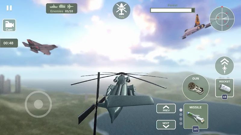 Helicopter Simulator: Warfare is a game designed in the style of combat simulation that players should not miss for their favorite game collection. The game will bring its players the ability to control the most modern combat helicopters to be able to fly in the vast sky. Players will be able to feel the level of authenticity of the game with the ability to simulate the cockpit as well as the outside terrain to carry out dangerous combat missions.REASONABLE FLIGHT MECHANICSOne of the attractions that this diversion can bring to its players is the foremost reasonable flight co