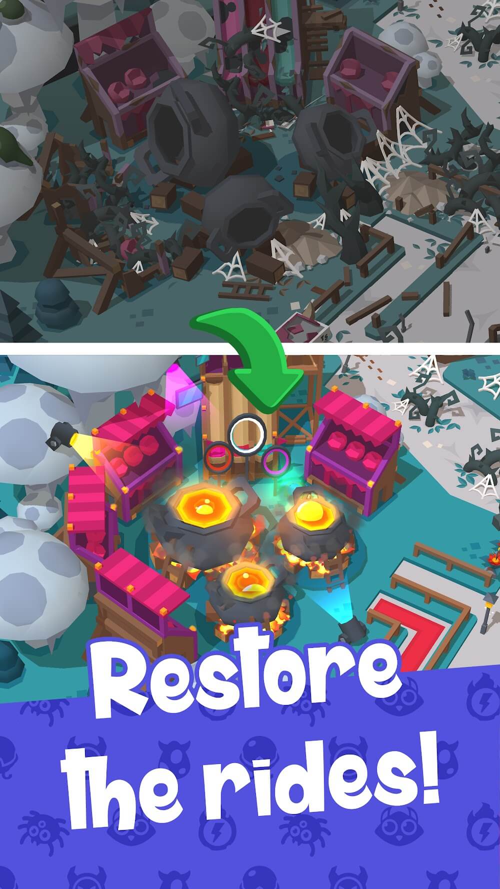 Hell Merge Premium en in hell a while ago, an amusement park received everyone’s response, but they have become highly desolate with an incident. Now, you will be assigned the essential task of restoring fun, an attractive play space for everyone. Many jobs will be offered, and you will need to use your thinking ability to overcome puzzles to complete the challenge.To achieve your goal of restoring the amusement park to everyone in the hell you want, you’ll need to start with puzzles. The game has equippe