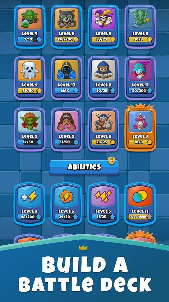 Hero Royale apk-en The same heroes can combine and form a hero with higher tiers to improve their strength and attack powerfully on enemies. At the same time, players can also replenish heroes through the energies they collect when they kill enemies, which are also used to upgrade the stats for a specific character. Therefore, the player will continuously increase the level of defense.