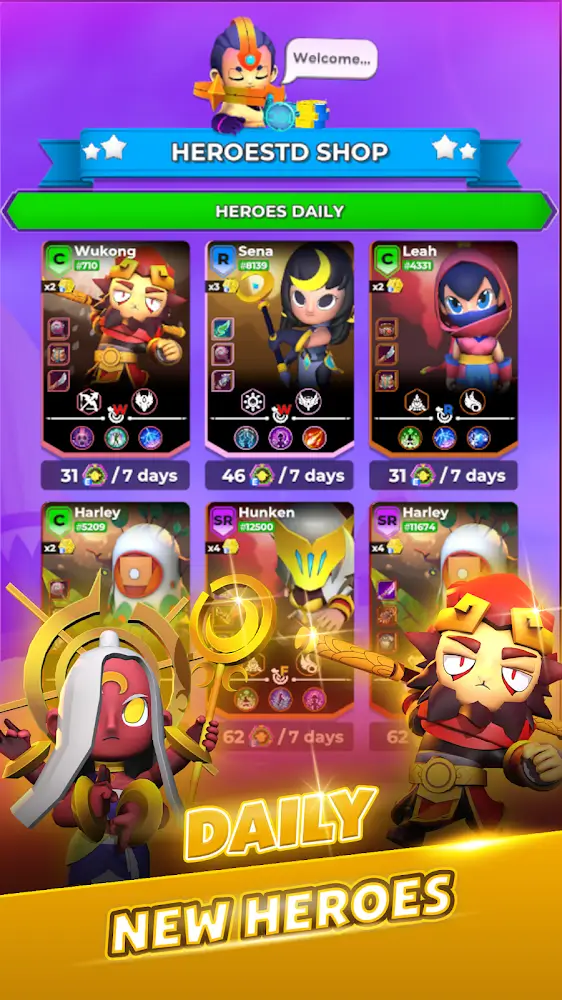 HeroesTD is a tower defense game that revolves around defensive gameplay based on the arrangement of character pegs to work together to resist attacks from outside and defend the castle. The game has been blowing a new breath into the world of defense games when bringing completely new gameplay but still retaining the distinctive identities that the defense genre game brings. Join the game to experience the latest features it brings right away.DREAMY GAMEPLAYUsually, other defense games will emphasize the fixed element by building defensive targets on towers to block incoming enemies. But this game is completely different when it focuses on the tactical element thanks to the arrangement of defensive positions to
