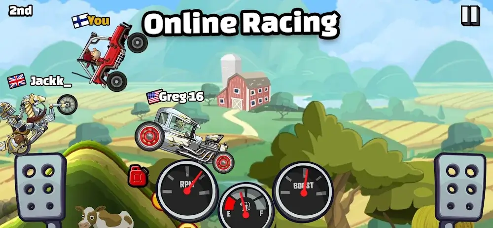 Hill Climb Racing 2 Mod Apk CUSTOMIZEBecoming a winner is always the goal that players will find in Hill Climb Racing 2, and of course, you are not the only one conquering hills but also with other players. The difficulty in this game is that besides moving the vehicle accurately, the player needs to overcome other objects. A stage will usually have 4 different players, and you will have to try not to make mistakes because other opponents can surpass you at any time. At the same time, with difficult terrain, players are also limited in slowing down because it can reduce vehicle speed and create opportunities for other players.Diverse number of vehicles: With so many options in the shop, players will certainly have to spend a large amount of money to own them all.Stats will improve: Every motorbike has special stats that will change when combined with a completely new part.Freedom to edit: It is you who will decide the direction of development of these means to win.PHYSICS-BASED GAMEPLAYThere will always be tips to help each player conquer the terrain and other opponents. When the player moves, the player must pay attention to his speed and make sure the c