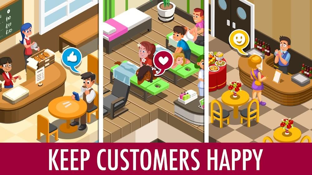 Hotel Tycoon Empire apk-en structors, and cleaners will continuously appear.Operational Help: These characters often engage in extremely impressive activities that make guests feel satisfied. This is completely understandable because you need to focus on the satisfaction of the guests.Business Boost: Their abilities can also boost profits in many different ways. Of course, you will be able to unlock these potentials quickly over time.