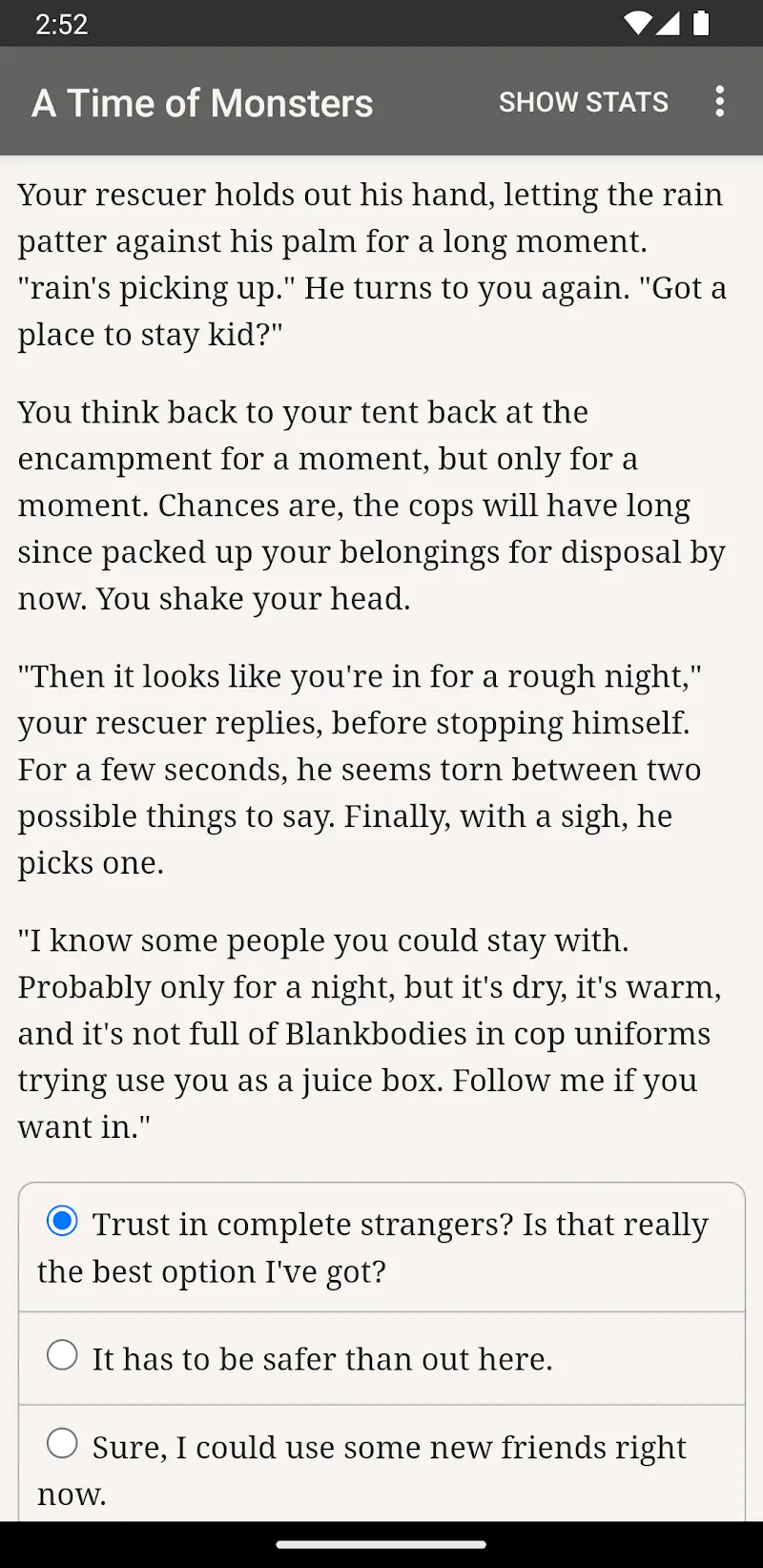 Have you ever searched for a game designed in the style of a story-driven role-playing game that you can easily experience on your device? Then, Hunter: A Time of Monsters will be one of the great choices that you should not miss for your favorite game collection, with the attractive features it possesses. The game will bring its players an interactive novel experience, where they will be able to accompany their characters through a story expressed in text form.IMMERSIVE NARRATIVE DEPTHOne of the most attractive experiences that this game can bring to its players