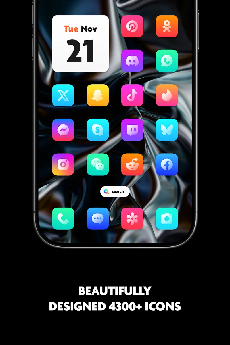 i18 Icon Pack is an application designed to bring useful experiences about the collection of application icons that they can change the way they use their technology devices. The application will bring users with a large collection of application icons designed in the famous iOS 18 style. Through this collection, users can easily customize the device’s main interface according to their favorite application icon style.STYLISH BRILLIANCEThe application will bring you an amazingly lovel