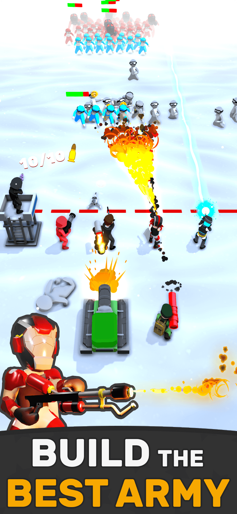 Idle Army Mod APK is one of the best team working games where every player can learn teamwork and dream of being a squad leader. Here you can attack the opponent and the enemies with your team.GameplayHere in this Idle Army game, you can team with the best team that you like, and as shown in the above pictures, plenty of enemies are crime forward towards you to attack your team.So be alert and attack the thousands of enemies with the best team by