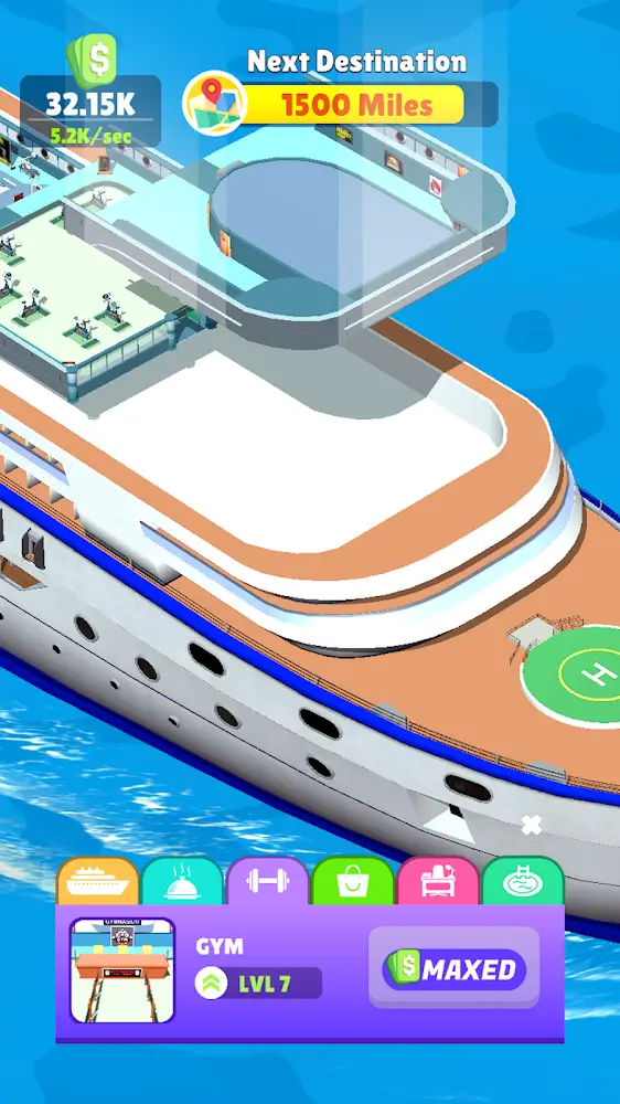 Idle Cruiseliner Premium th stars. Will you try to get the highest score and get many stars? The bonus continuously increases each time the player completes the mission.MOST MODERN EQUIPMENTIdle Cruiseliner gathers the most modern facilities; you cannot imagine the scale and grandeur of the yacht. High-class restaurants, gyms, shopping areas, bedrooms, swimming pools are arranged on high floors and have beautiful ocean views. So what is the main task of the player? Please focus on upgrading each level; remember that there will be more stringent requirements with higher levels. That’s why focus all your energy and don’t let customers get bored with the old style. Continually innova