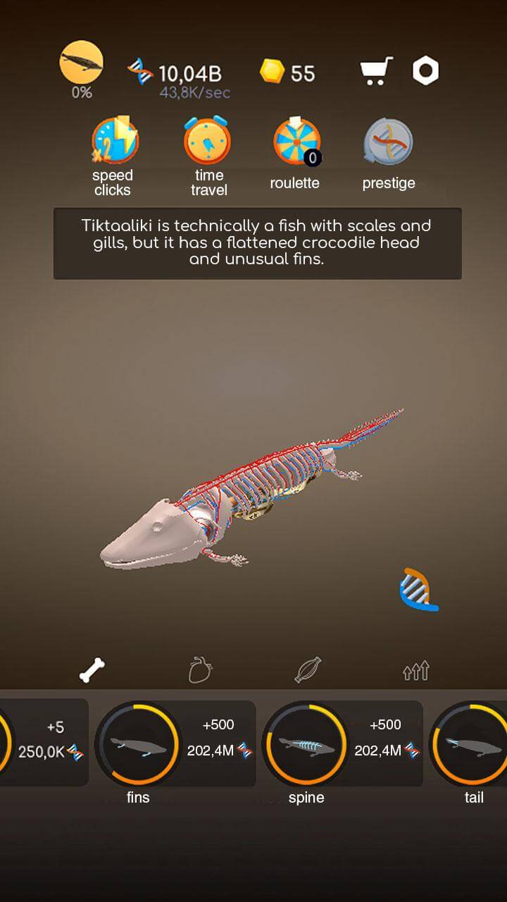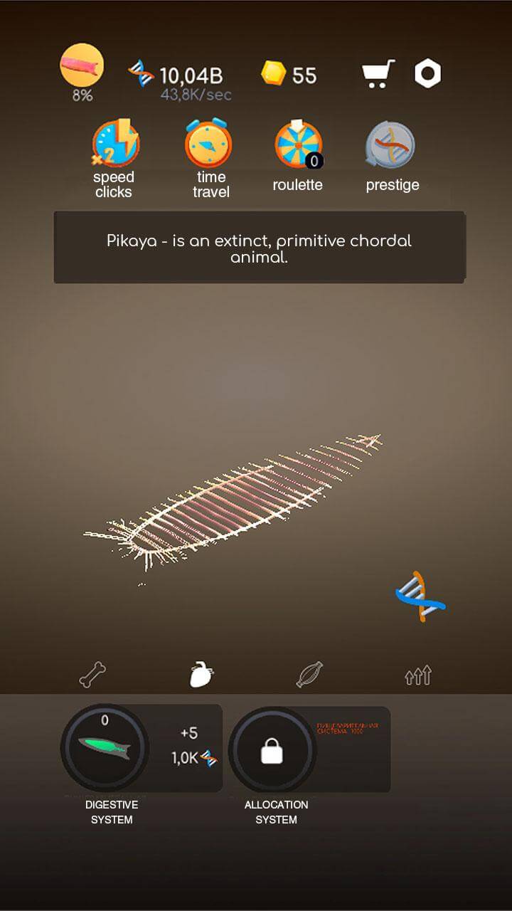 Idle Evolution From Cell To apk-en conceived as taking place in stages. For example, the process begins with the genome and ends with the entire body of an alligator. Starting with the genome, about 202.4 million pieces of genetic information are needed to develop the skeleton. After the bone is completed, the nerves and blood vessels are attached. Next to the digestive system are the liver and other appendages, such as the tail and scales. Brain, muscle, adipose tissue, and other tissues are also present. The final small components are the eyes, nails, skin, and scales. Materials and information are provided to assist players in having fun while learning something new.