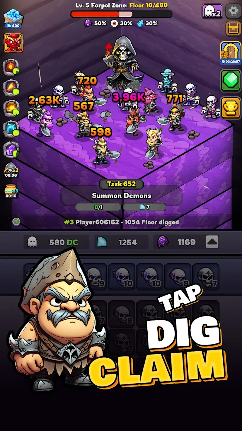 Idle Hell Miner Necro Merge apk-en o help you actually create a powerful army in the mine.Offline Resource Collection: With each dig down, players will continuously collect a large amount of resources to combine and maintain the operation of the digging team, contrary to popular belief. You can experience this game even when offline to collect more resources.Strategic Upgrade Path: Players need to upgrade their strategies to explore the dungeon faster. There are hundreds of undiscovered items below you. The game will always create a mysterious space, so you cannot predict the next step. The strategy of pairing the pieces generally needs to be smarter to solve problems in your team really early.
