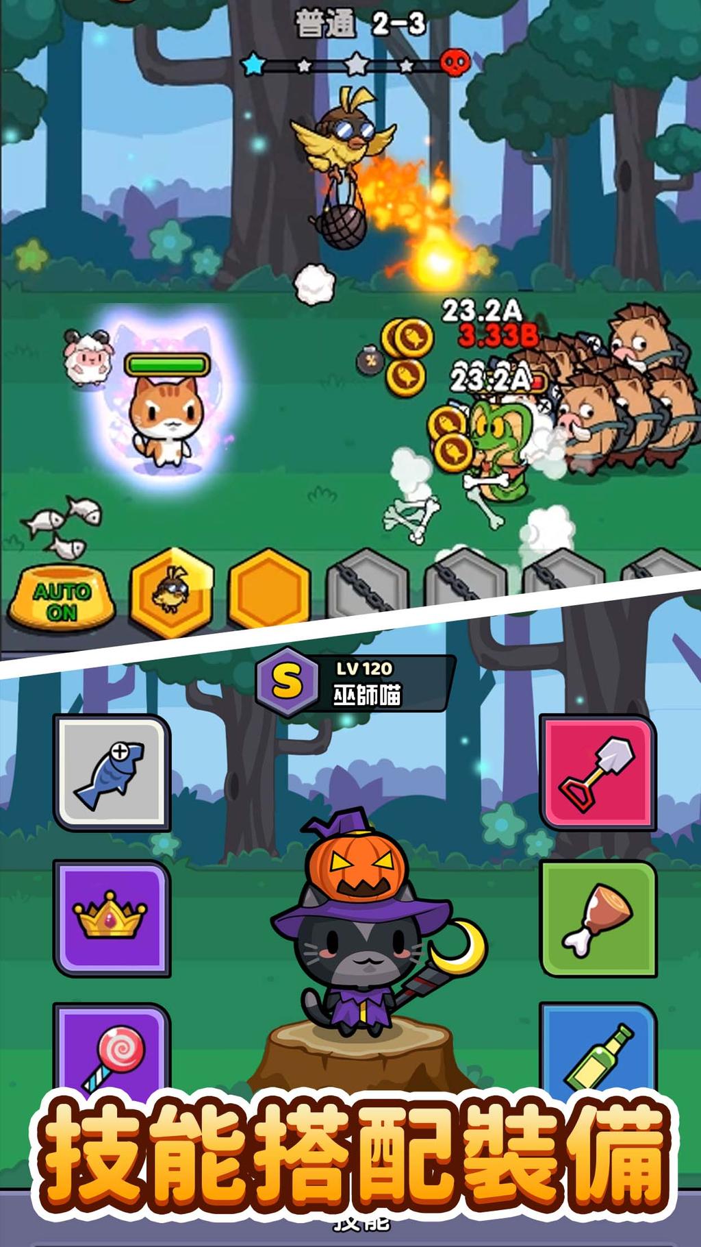 Join the cat hero in Idle Legend of Cat MOD APK – protect the forest, collect artifacts, and conquer foes!In the thrilling action, strategy, and idle game Idle Legend of Cat, your feline prowess is your last defense against alien beasts. You must assemble an ideal group of feline heroes, act as a courageous cat warrior, and restore harmony to a forest. Intrigued? Learn what makes this game so fantastic.MERGE IDLENESS AND ACTION-PACKED RPG ELEMENTS AS A SWORD-WIELDING FELINE HEROThe primary gameplay in Idle Legend of Cat combines idleness with intense RPG elements. Think of yourself as a cat with a sword, a shield, and many abilities. More than just scratching posts, slashing alien beasts! You can equip your feline hero with various weapons, armor, and accessories in the game. What’s best? Combat in the game is automatic. Your cat avatar continues to gain gold co