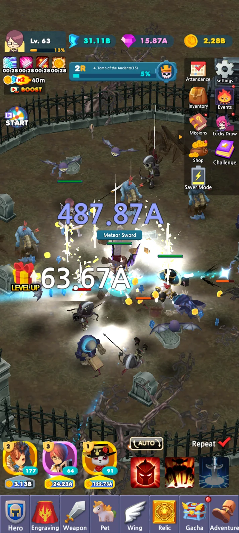 Idle Leo apk-en these huge rewards, players need to fight harder and increase their winning rate.Automatic Idle Grinding: The game forms an extremely interesting level system for players to conquer. Each level will have different difficulties, creating the appeal of this game. Players can start the automatic combat mode to have the most idle experience.Generous Offline Rewards: Many side stories related to heroes and their special skills will be developed. Players can receive additional rewards when completing additional missions well. The game will reward warriors who work hard in fighting and training.