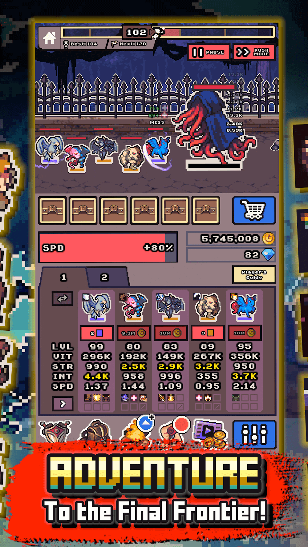 Idle Monster Frontier apk-en stics can be more critical than your monster’s level. You must complete your entire team with strong monsters. To create a master monster, merge two strong monsters. There will be a sparkly marker at the top of your screen, which is the Frontier that, is the furthest conquered outpost. Fighting on the Frontier is more challenging with more dangerous monsters. To complete the level, reach the end of the outpost; after claiming it, you can teleport to the furthest outpost from your home base. Save the world from the Darkness is your goal in the game.