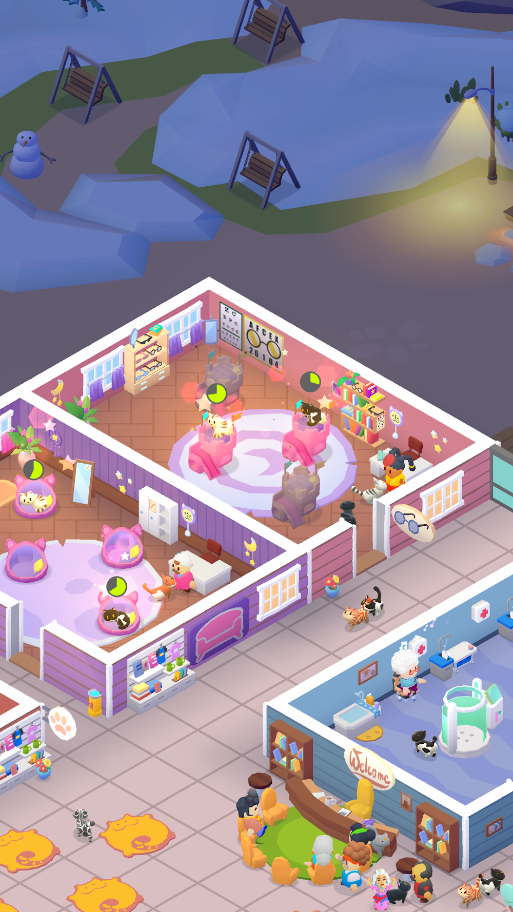 Idle Pet Shelter Cat Rescue Premium our cats, you can unlock the medical examination service to ensure the health and life of the cats living on your island is the best and most perfect, giving you extremely attractive and interesting playing experiences.CARE FOR THE CATSComing to this game, you will be able to take care of your cats yourself. This job will bring you endless joy and happiness, making you feel extremely happy when playing.Feed, Play, Sleep: Your cats will live in the happiest environment. And the