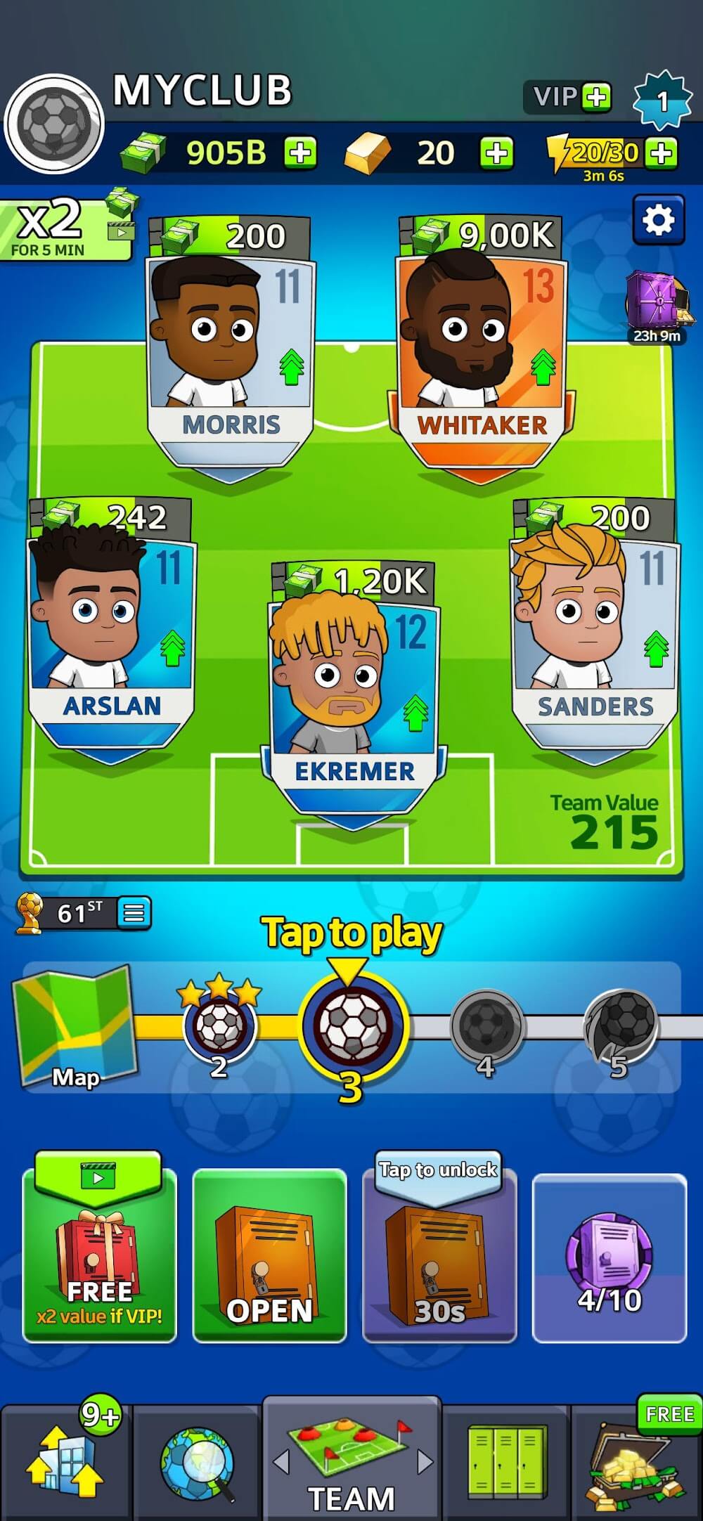 Idle Soccer Story apk-en e rate varies.There are multiple levels, get a 3-star rating in each one. Build, train, and upgrade your team before starting the challenge. The game provides you with a map to explore the world and gradually increase your ranks. Select the events on the map that best suits your soccer club and collect daily rewards and cash. Even though it is an animated soccer game, the visuals are realistic and resemble real-world Football with the same rules and business tactics.