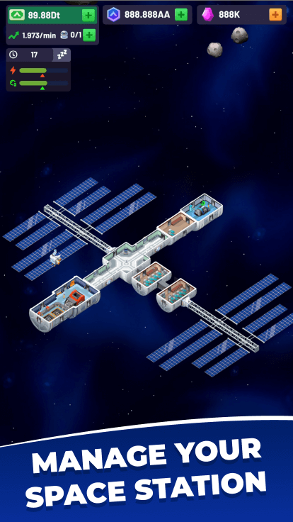 Take charge of the International Space Station in Idle Space Station MOD APK – and transform it into a thriving space empire!Step aboard, space enthusiasts! Dive headfirst into a universe of interstellar entertainment with the fascinating game Idle Space Station. Starting with a single astronaut, you’re tasked with cultivating a sprawling crew and transforming a modest space station into an awe-inspiring galactic empire. Meteor processing, fiscal management, and strategic upgrades form the crux of this vibrant game. Despite the game’s moniker, the experience is anything but idle!A STATION OF YOUR OWN – MANAGEMENT AND STRATEGYFrom humble beginnings with just one astronaut to an interstellar juggernaut, the heart and soul of Idle Space Station lie in its management mechanics. With each decision and action, you shape the fate of your space station.