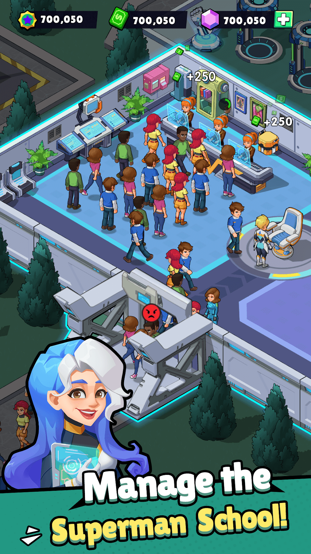 Idle Superpower School Premium ADE STUDENT COURSESThis game’s gameplay is very well designed so players can experience and immerse themselves in the sharp 3D context and vivid effects. Furthermore, your task is to train the students to obtain the desired superpower quickly. More specifically, many guests will be visiting your superhero training school to register as students, so please welcome and support them as best you can. Furthermore, your school will have unique machines and equipment to serve the courses, which you can use. However, players must upgrade their courses to ensure quality and more effective training. Furthermore, your quests will continue to work even if you are offline, allowing you to participate