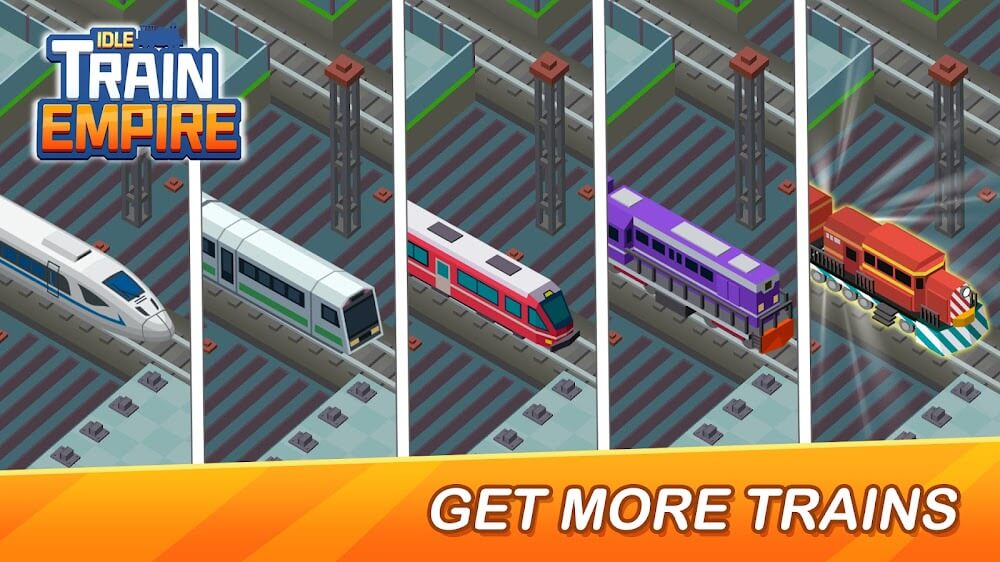 Idle Train Empire Tycoon Games Premium ment can make money, and of course, the money you earn will continue to be invested in them through upgrades. Players will find each tab related to different interiors; you just need to look at the expected stats you get after upgrading to make a choice. Maybe in the beginning, the amount of money earned is quite small, but if you imagine a large number of objects helping you make money, it will create an impressive effect. You will see your money continuously increase over time, so keep focusing on the important things to help your station grow.Clean and modern feeling: From a normal station platform, you can turn it into a large one to operate more trains.Improved reputation: Any service offerings will increase over time until you realize you have to upgrade your current facility.PROFIT GROWTHNot only the interior, trains with different designs and rarities will be able to roll out any time you want. The unlocking system is based on a gacha system where players are forced to use the resources they have to unlock, and each rarity will have different spawn rates. What’s better is that you can get a completely modern train and be able to join other ones carrying guests at different time frames. Once you have placed it on the track, there is no need for commands, and it will