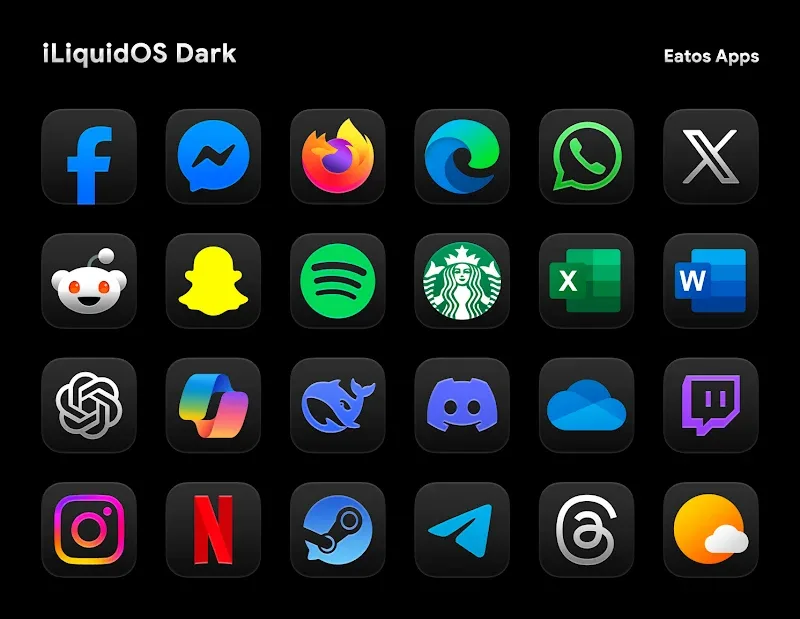 iLiquidDark – Icon Pack is an application designed to bring useful experiences that users can change the way they use their technology devices. The application will bring users the ability to refresh the user interface of their mobile devices with boring display icons designed by the manufacturer. Users will now be able to own a large collection of alternative application icons designed in the extremely trendy OS26 LiquidGlass style.ICONSThe app gives you a lot of icons, so you c