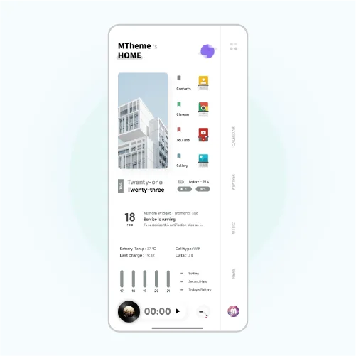 Imagine Ui For Klwp apk-en s both aesthetically pleasing, concise, and logical. In addition, the application helps you manage your smartphone’s system more scientifically and in detail.Weather Information: This is one of the most popular widgets on smartphones. It’s more convenient than anything else.Music Control: The music player also greatly assists you in its operation.