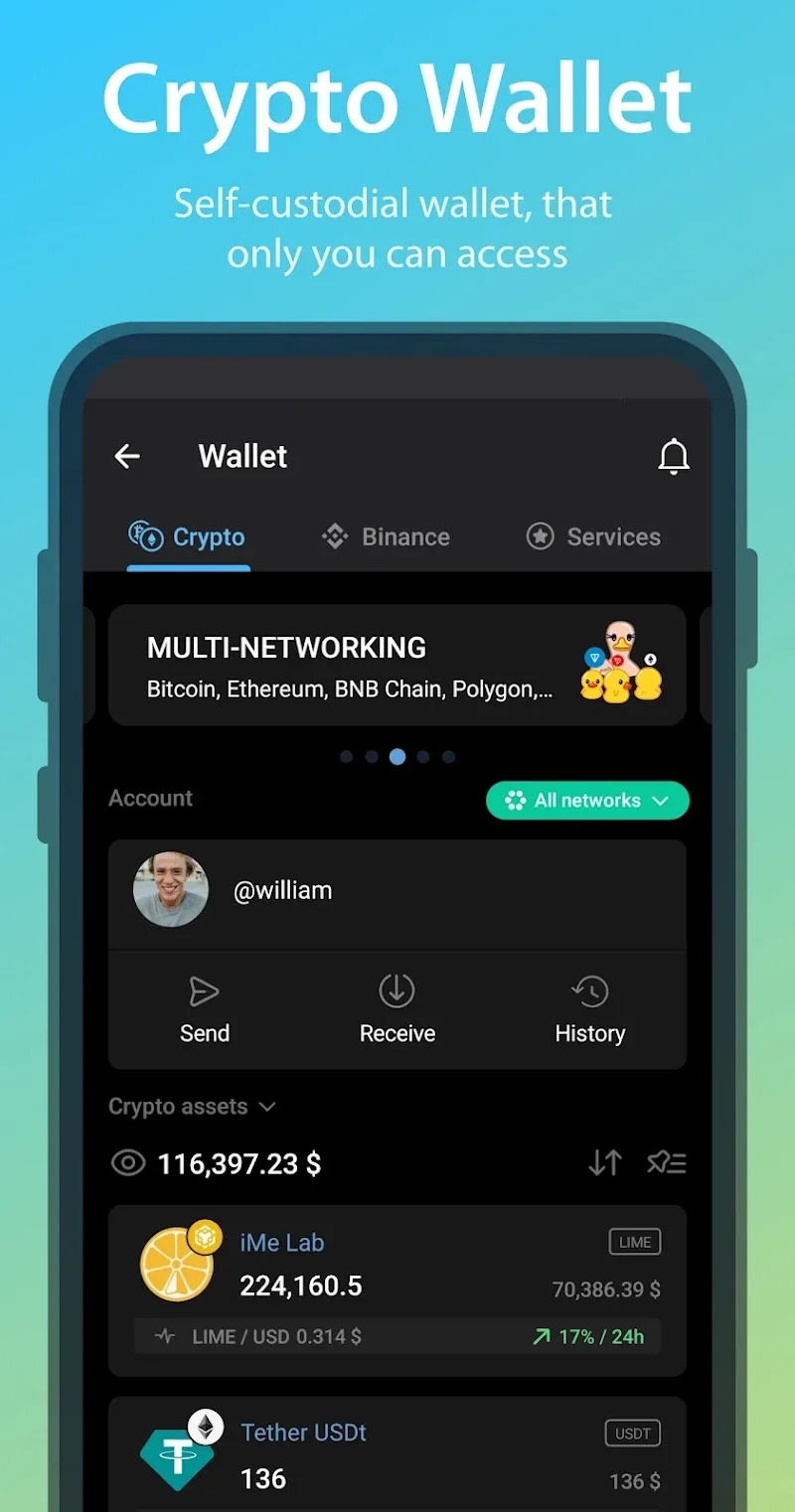 iMe: AI Messenger for Telegram is a messaging app that combines chat and digital asset management. The ability to arrange flexible conversations helps users maintain community connections. Users can also manage digital assets through the integrated cryptocurrency wallet to make quick transactions within one application.EASY CHAT NAVIGATIONUsers can keep everything organized, making it easier than ever to navigate conversations. A folder system helps users stay on top of every discussion without missing important information. You can get right to the point with the quick access panel feature to increase convenient connections with acquaintances.Customizable Organization: You keep everything in its place with an improved automatic sorting and folder system. Users can easily stay on top of all conversations to categorize them effectively for smooth sailing message management.Topic Assignments: You divide and conquer group discussions by topic to help focus on the most cutting through the noise group.Quick Access Panel: Recent chats let you get right to the point by quickly accessing your frequently contacted people. It’s the fastest way never to miss a beat!CRYPTO WALLETDigital asset management is easy, as users can keep all their ducks in a row in one application. Multiple cryptocurrencies and DeFi service integrations can help you dive into the cryptocurrency world quickly. Easy deposit tools help users make transactions a breeze to maximize convenience when trading.Multi-Network Support: Wide range of support with just a one-stop shop for managing cryptocurrencies, such as Bitcoin, Ethereum, and many others. You can keep all your eggs in one basket securely.Integrated DeFi Services: Users can dive into DeFi that cut out the middleman to simplify transactions to the max. Managing digital assets becomes a walk in the park for anyone.Custom Tools: Make easy transactions such as sending money via QR code, invoice, or chat. This essential multi-tool is supported to help users stay ahead of the game in managing crypto payments.