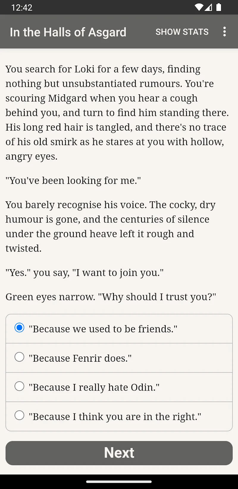 Do you think being a god is cool? Being a god has its own problems. Being a god in Asgard is not so cool. You can understand that because this is a warrior tribe. They all worship battle, and there are constant conflicts. In the Halls of Asgard is an interactive novel that allows players to play as a god. You will be able to use your decisions to play and lead this divine dynasty. Will you cause it to fall, or will you make it rise to new heights?DIFFERENT SAINT COMBINATIONSComing to this amusement, you may end up a warrior and meet ot