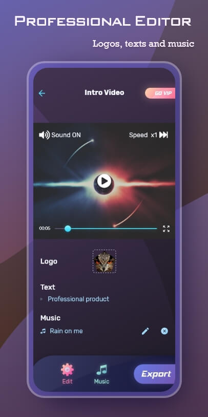 Intro Video Maker apk-en y attention to if you want to create the most points for your intro video. With hundreds of unique logo templates, you can unleash your creativity and create fantastic intro videos. After editing, you can export the video to your device in full HD without worrying about Watermark. If you want, you can also share the intro video directly on Facebook, Youtube, and Instagram.