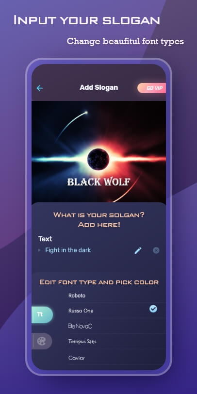 Intro Video Maker Premium the Add Slogan feature, you will be spoiled for adding text as you like or a few lines of short messages to send to viewers. The application will provide more than 120 diverse fonts to customize, and you can also change the color of the text to make it stand out. Not only that, but the application also has a beautiful collection of logos and stickers that you should pa