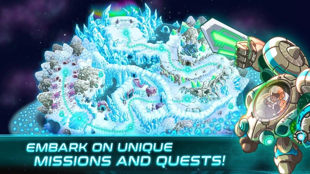 Iron Marines Mod Apk st attack efficiency. Therefore, they will quickly come to new areas and, luckily, meet stronger teammates. The equipment sent is often scattered inside the environment, and you should focus on protecting them before the enemy has time to move in and destroy them.EXPLORE A NEW PLANETIron Marines Offline Strategy opens when you see a colorful planet and decide to go there to explore. Here, some modern equipment has been set up to help summon wa