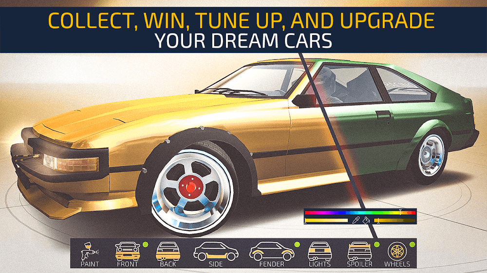 Jdm Racing Mod Apk safe distance and quick reflexes to avoid attacks from the opponent. Difficulties and thorns are waiting for you ahead, so master every track.A unique feature is that JDM Racing has collected all the legendary Japanese cars from the 80s to the present. Not only will you have the opportunity to see classic cars, but you will also be able to improve them with striking paint colors. You can choose the car with the color you like or match your racing style. Other car parts and