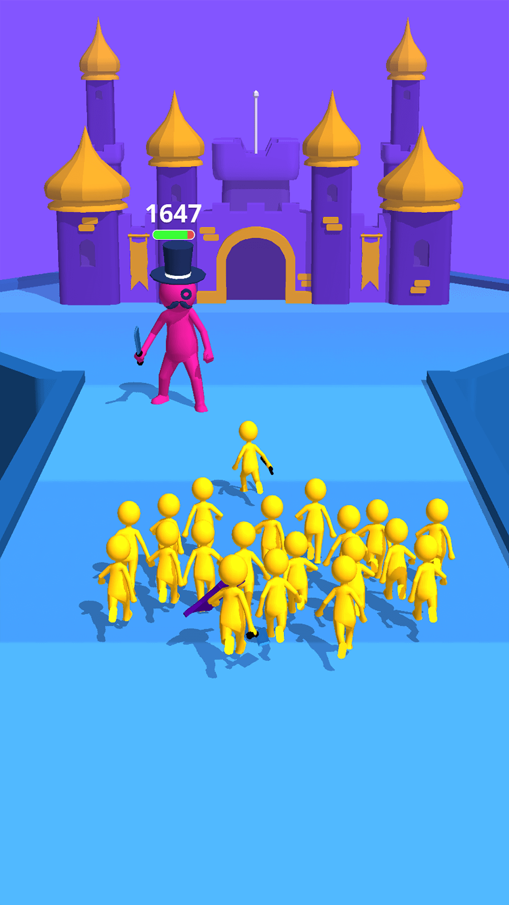 Join Clash 3d Premium but maintaining the number of people will be difficult for you. They often move in a horizontal line and cover the entire path so they can accidentally hit chainsaws, irons, or hammers scattered everywhere. The game’s difficulty will increase as you get closer to the finish line, so try to move skillfully and quickly to preserve the number.When you reach the castle, you will face a giant boss with its army, so you will have to defeat them all to win. Your reward i