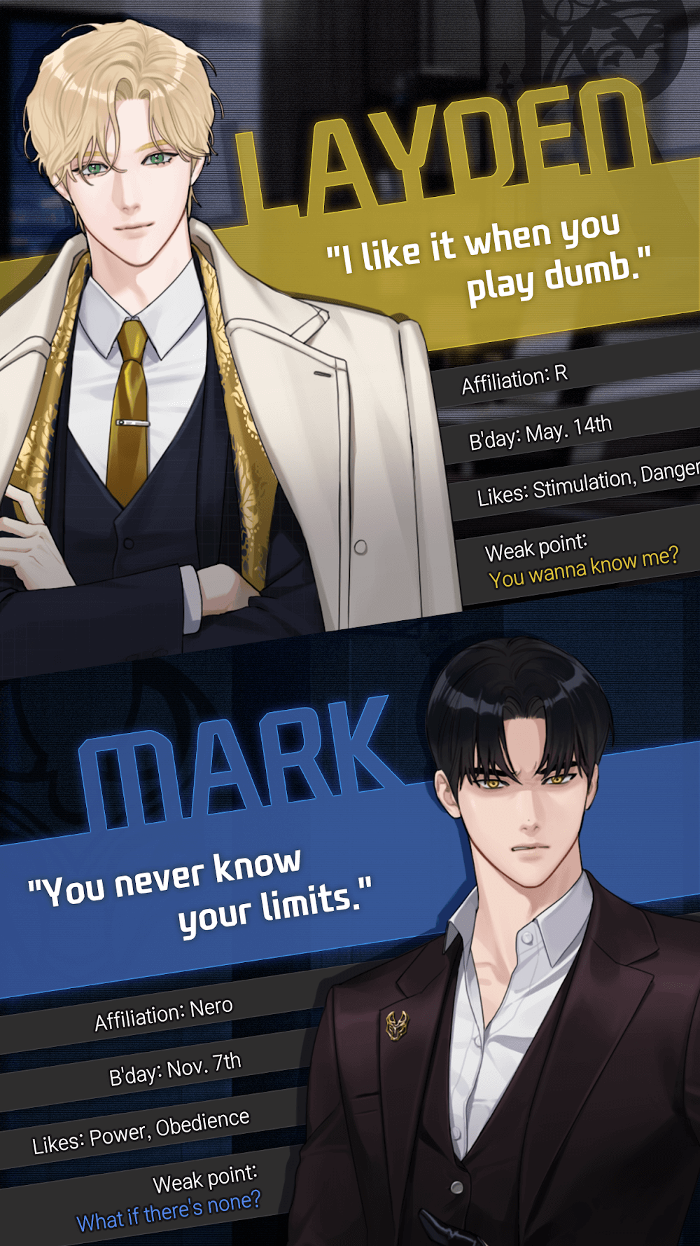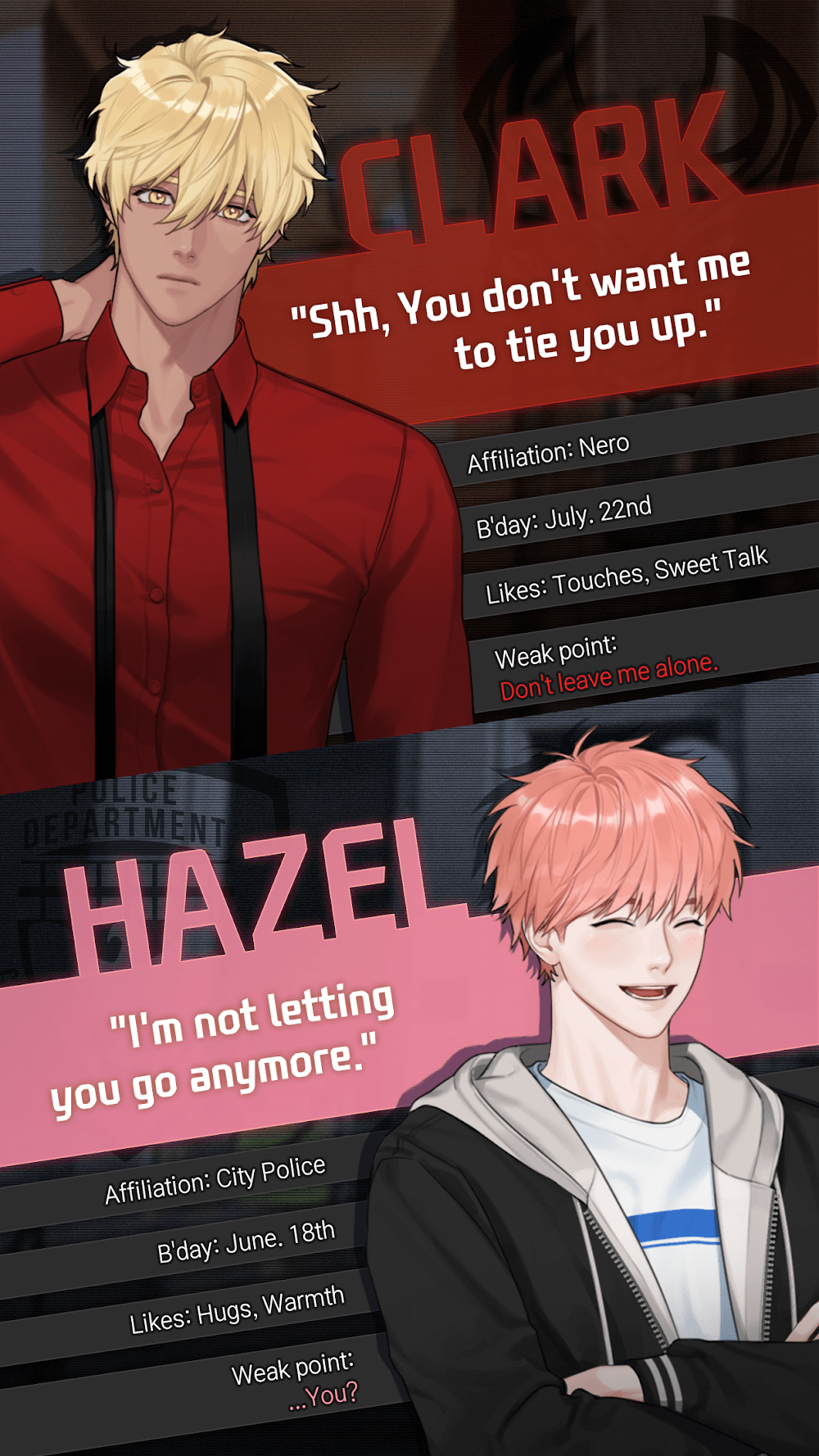 Killing Kiss Premium by little, through conversations to romantic dates, giving you extremely attractive and interesting emotions when playing as if you were really living in this game.MATURE AND THRILLING PLOTThe game brings you love stories full of maturity and full of romantic situations, giving you extremely attractive and unique experiences when playing.25-episode story: You will experience 25 episodes, and each episode will bring you different, unique appointments and emotional stories, giving you countless attractive dates with