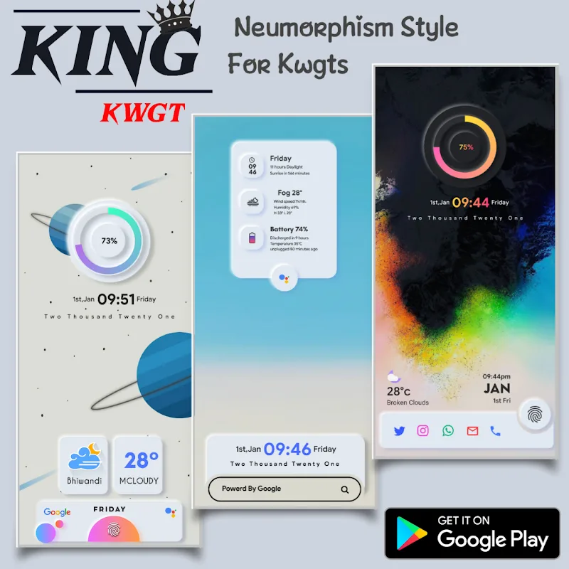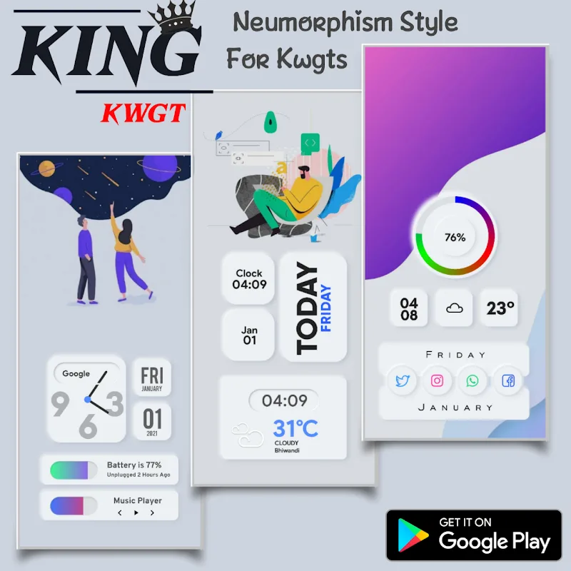 King Kwgt apk-en tings. Features and tools, from simple to advanced, will give you the most complete set of tools for good editing.Adjustable Widget Scale: The application will bring you extremely extensive utilities. Brings you extremely convenient utilities so you can use your phone perfectly and optimally.Color Freedom Choice: The application will also bring you countless utilities with unique and diverse colors. Brings you outstanding utilities and makes your interface much more beautiful.
