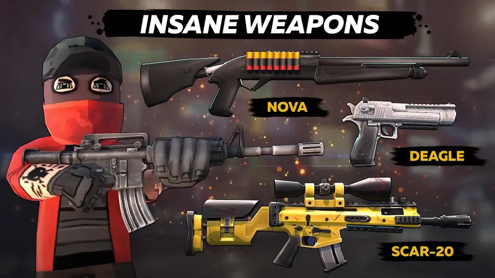 Kuboom 3d Premium appearance and change everything to prepare for major attacks. Besides, it is necessary to add super giant armor to avoid detection by strangers. The game provides you with a series of invisible armor to help you sneak into bases without worrying about being detected. Fighting and gaining more upgrades will help you get more support accessories as well as new weapons for combat.Customizable Characters: Change your appearance and add new skills that will help in battles.Unlockable Cosmetics: Players complete challenges and unlock new upgrades in costumes and accessories to support during gameplay.USER-GENERATED CONTENT AND TRADINGPlayers will collect outstanding weapons and then load them into their arsenal. You can open a separate arsenal right on the game screen and move and attach weapons there for easy finding. If you have a lot of weapons, you can sell them in exchange for more of your own power. Not only do you sell for more revenue, but you can also fully investigate the terrorist’s lair and find the leader of the city. Players can customize weapons t