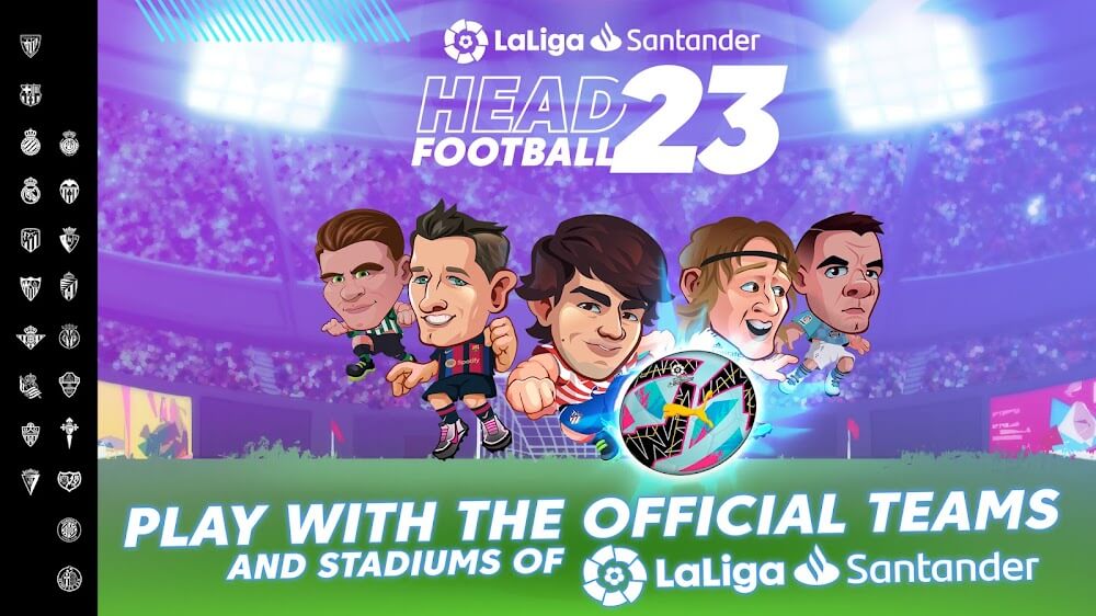 Head Football apk-en itual dish you cannot ignore when enjoying exciting matches. And Head Football also owns an official license from the LALIGA tournament to be able to use the images of the clubs and players belonging to the league. Because of this, you can control your favorite teams like Real Madrid, FC Barcelona, Atletico Madrid, Sevilla, and many more. Being able to personally control top players playing in legendary stadiums like the Santiago Bernabeu and Camp Nou will be a great experience that not everyone can try.