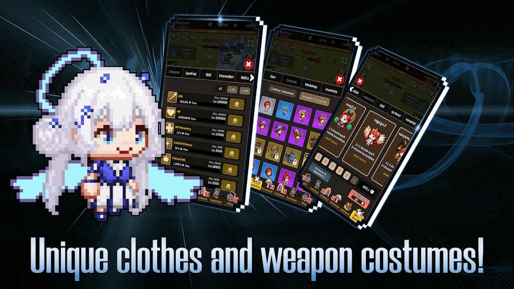 Legend Summoners Idle Rpg Premium ur pocket.Simplified gameplay: Players usually don’t have much trouble with an idle mechanism because everything is simplified. However, the fun still exists when you have to find a way to destroy as many monsters as possible.DIVERSE CONTENT & CUSTOMIZATIONThe necessary actions are often kept completely instead of having to leave it on automatic mode. This is completely understandable because each person still wants to transform into the hero they control.Overwhelming skill effects: By swiping the