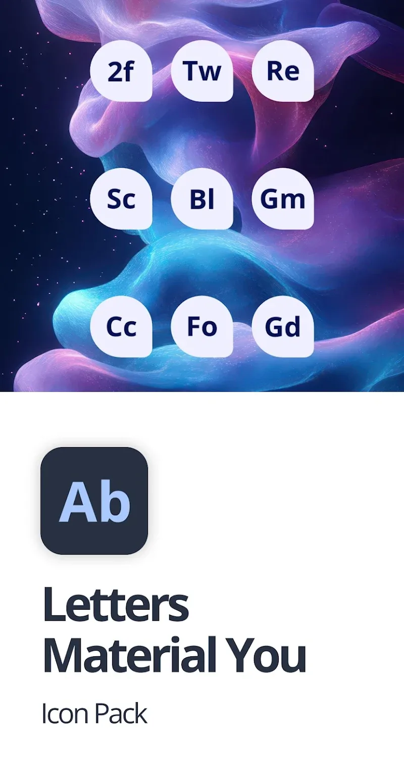 The idea of this application is extremely unique. Do you feel that your smartphone has a screen that is too complicated, with too many applications displayed on it? Indeed, each application wants to show its own characteristics. Therefore, with so many mixed designs on one screen, everything will become chaotic. Therefore, the publisher of Letters Material You Icon Pack has come up with a truly bold icon pack. It does not have any groundbreaking design. The breakthrough lies in the way it represents applications through letters. Simple and easy to understand. The letters will represent the application.VAST ICON LIBRARYHowever, with the huge number of applications on the internet today, these icons still have a huge number. In fact, each different font and arrangement has created a huge diversity. Users can choose for themselves the icon sets that they find most interesting. It will give them a truly rich choice beyond imagination. In fact, the background color of the icons is already a variation worth looking forward to.Extensive icon selection: Such a large treasure trove certainly makes users feel extremely happy. They can freely choose, experiment, and explore to their fullest.Covers many applications: And thanks to such an outstanding treasure trove, the application gives users a very large coverage. Almost all popular applications have their own icons.DYNAMIC MATERIAL YOUAnd the Material You standard is definitely what makes it synchronized with many different devices. The fact that the icons are designed and created based on a certain standard will bring great synchronization. That means, no matter which icon pack you choose, its display on the screen will be accurate. This gives you a sense of uniformity, with no conflict in color and design.Matches your wallpaper: Of course, with standard synchronization, all the wallpapers you have can be perfectly compatible with these icons.Adapts to system: It can even be compatible with the user’s system, so that you can use everything as smoothly as possible.