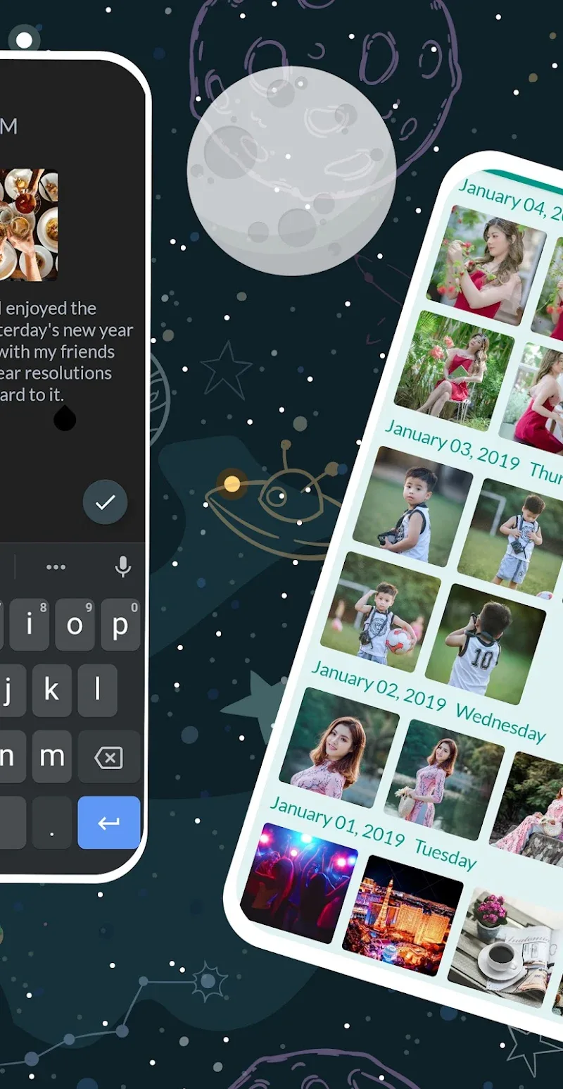 A personal diary is recorded by users right on mobile devices. Life: Personal Diary, Journal provides a service to record daily schedules. Users can share stories that happen in their day. Besides, they can also share pictures or dreams in the diary. This is a special diary with perfect security.LOCK & SECURITYThe information entered by users into the application is protected. Users can rest assured of the application’s ability to protect information. The content you share will be created with a security lock. This security layer prevents unauthorized access. Users can manage their diaries well.Privacy Protectio