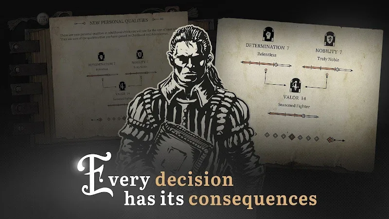 Life & Suffering of Sir Brante is a narrative role-playing game that any player who loves this genre should not miss. The game will bring its players to the direct role-playing experience of the main character, Sir Brante, to be able to experience his life in the most realistic way. Players will also be able to feel the level of injustice in this society with the deep division of classes, as well as the old ruling regime that makes people miserable.BRANCHING STORY FRAMEWORKOne of the appealing features that this amusement can bring to its players i