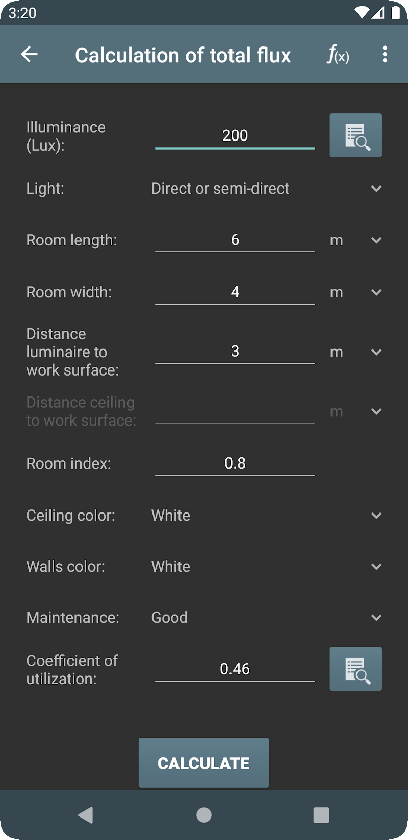 Lighting Calculations Mod Apk ly access useful features to calculate the light accurately. From there, you can ensure the quality of observation in certain areas.Accurate Flux Calculation: The system often provides a series of secondary features to support the calculation process. Therefore, ensuring luminaire quantities is completely easy to perform.Power and Efficiency: Besides lighting ability, you also need to pay attention to power factors. They often become the target that each person has to edit un