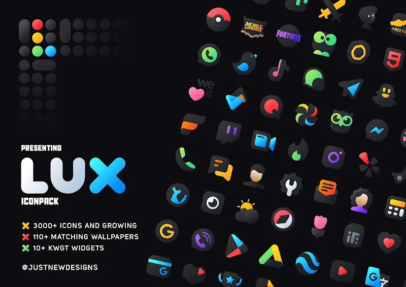 LuX IconPack will bring you a more beautiful interface. Coming to this application, you will come to a collection of extremely high-quality and attractive icons. Icons with carefully designed images will make your phone much more attractive and outstanding. You also own full advanced features and tools for more convenient editing. What are you waiting for without coming to this application right away?UNIQUE VISUAL AESTHETICSComing to this application, you will come to high-quality aesthetic designs. Bringing you an interface with perfect icons down to every detail without any criticism.Unique and Different: The application will bring you unique themes and different styles. Bringing you extremely unique interfaces exclusively for you, without any limitations.Works With Both: The application will quickly become compatible with your phone and operating system. Bringing you the most attractive and engaging user experience.Top Notch Quality: Coming to this application, you will come across the top images and designs. Bringing you the most luxurious and sophisticated interfaces.COMPREHENSIVE CUSTOMIZATION & SUPPORTThe application will bring you the most attractive and convenient features and tools. These tools will help you beautify your interface and phone quickly and easily without having to use too many cumbersome operations.Vast Icon Collection: Coming to this application, you will come to an extremely rich and attractive collection of icons. Icons with diverse and rich themes will bring you the most attractive and rich options, so you can have many options to use.More Than Icons: The app not only brings you icons but also brings you the most exquisite designs. Bringing you countless unique and interesting interfaces.Consistently Getting Better: The app will be continuously updated and improved. Bringing better, improved features and tools, along with new and more attractive icons. So that you can quickly use it without encountering any difficulties or limitations.