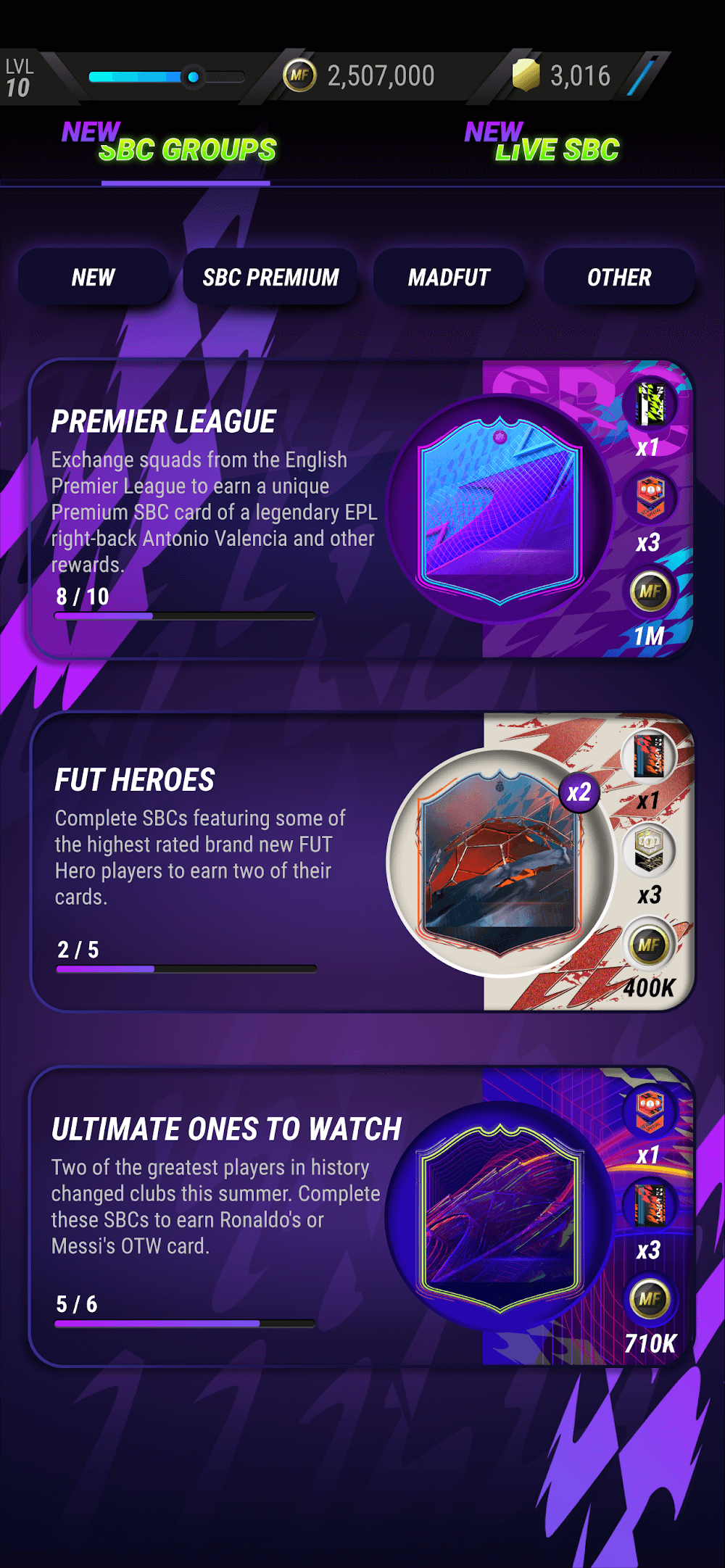 Madfut 22 apk-en increase your chances of winning cards and other rewards by leveling your team from Bronze to all-Specials and achieving Objectives. In addition, players can complete daily challenges such as Pack Of The Day and Draft Of The Day, as well as daily SBCs, and they can trade cards and packs with one another.Each day, fresh content will be uploaded to the website. In addition, new SBC card types and objectives will soon be available. Throughout the year, naturally, new Modes will be made available.