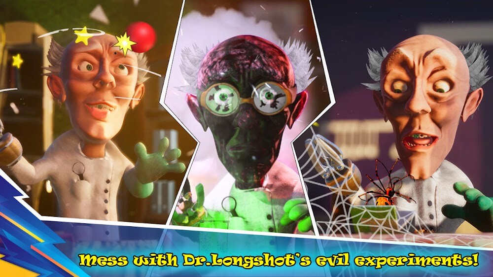 Mad Scientist Mod Apk ugh. Dr. Longshot plans to destroy Springshire and his pet. She must enter Dr. Longshot’s lab and face his mad robots to save her pet and Springshire. Check your health bar. You can buy or locate some at home. You can use tip serums from NPCs or shops to accelerate through levels. Players can display items.It’s easy to play—with easy-to-use controls. Move with the joystick, grab, drop, and use objects with the other buttons. Using a clue or exhibiting the thi