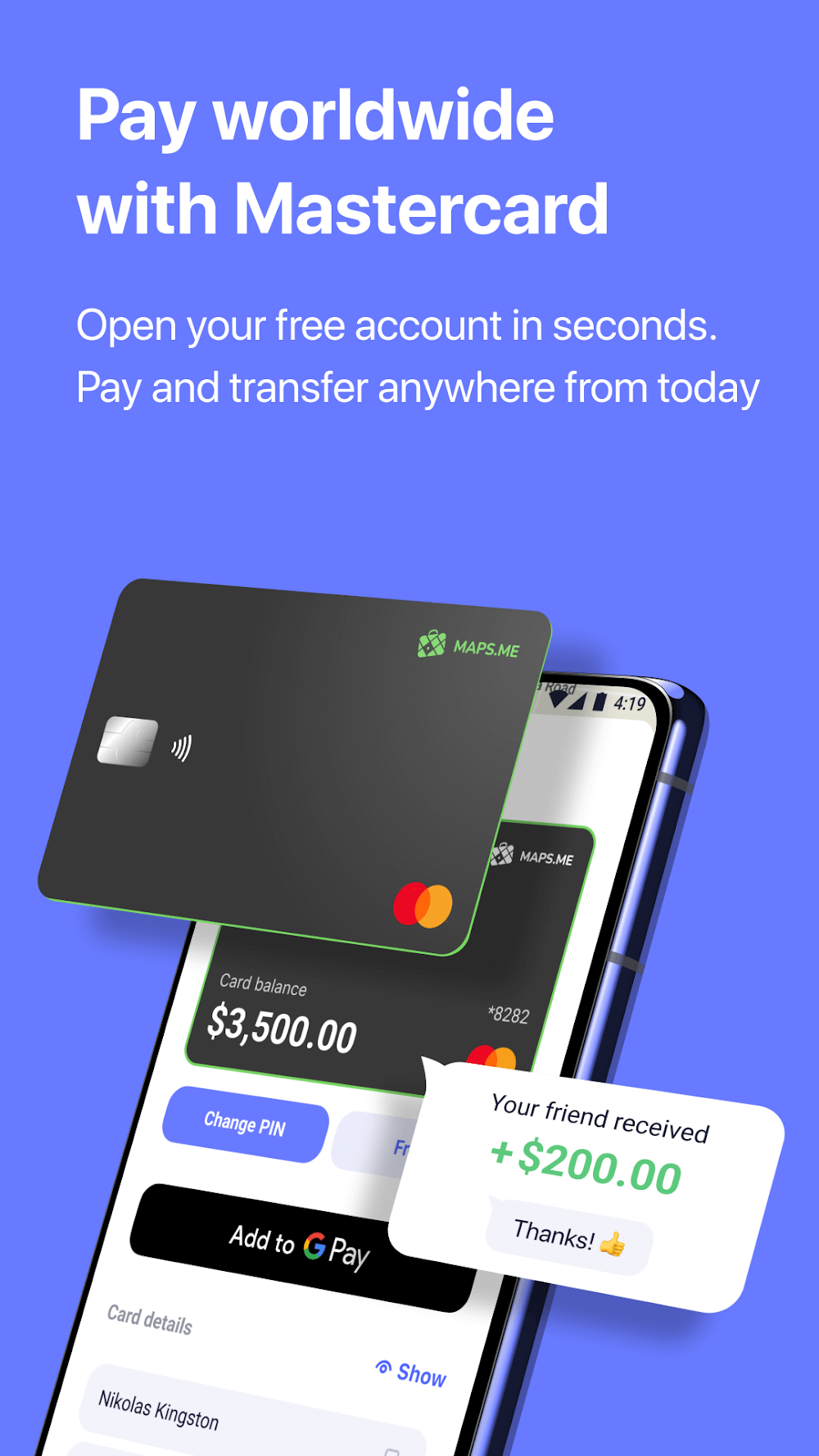 Maps Me apk-en tep. That means it will just go wherever you go without worrying about getting tangled. There is no need to touch your smartphone because, thanks to AI, it will emit sound directions.Hands-free navigation: For journeys where users need to drive, the application can provide extremely clear voice navigation.Customized route directions: The application will allow users to use many different means of transport, including driving, walking, and cycling.Offline navigation: Users can use the application offline, conveniently traveling from their locality to foreign areas.
