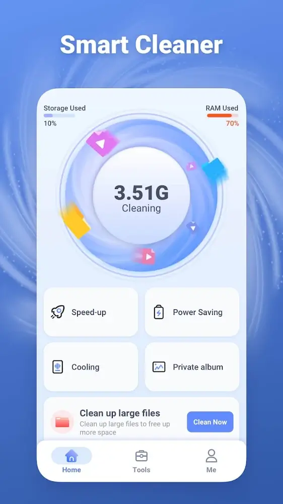 Phone Cleaner Master Clean creates a lot of experiences that cannot be ignored when managing a device. Important elements are often carefully retained while the removal is being done. At the same time, the organization process always ensures that you always protect safe areas and free up space reasonably.COMPREHENSIVE CLEANINGAny user is concerned about the device they are using for many different reasons. In particular, this concern can often be simplified through the most detailed controls.Deep cleaning: The system often provides many quick solutions to clean junk files. In particular, some large files also become targets if they are not used for a long time.Photo management: During use, increasing the number of photos is completely understandable. However, you also need to remove some things because this is where the most space is often taken up.Space saver: There are many solutions to free up space on your device that you can consider. Specifically, you can delete many large files next to duplicate images in the library.PRIVACY & ORGANIZATIONManaging the resources on your device will often be done easily over time. At the same time, it also helps you ensure that the resources are still safe even after going through mass removal.Hide media: Over time, important images or videos will often be hidden to avoid much attention. This often applies to features in the system next to other users.GPS removal: Specific information in an image can often be removed if you feel it is necessary. Of course, GPS will often be the most deleted element so that no one can get your information.Media manager: In some cases, media files are also often of interest because their capacity is also very large. In particular, observation becomes convenient by applying scientific organization.