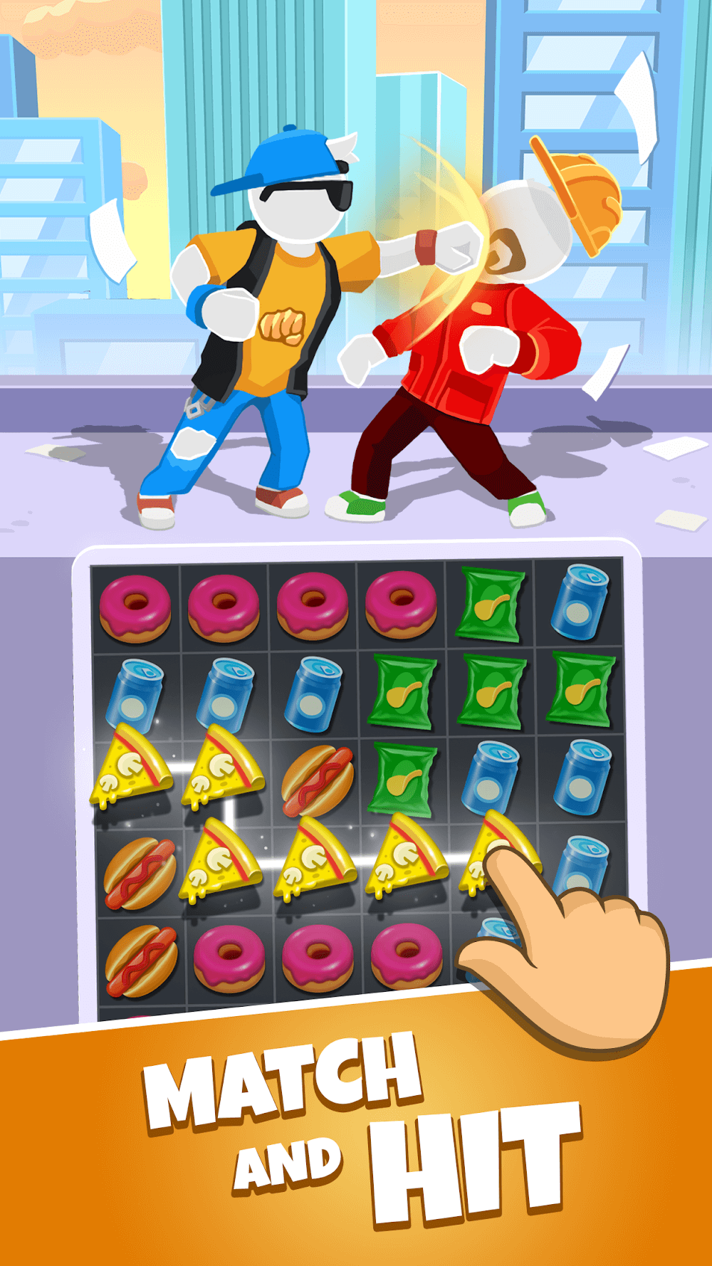 Match Hit apk-en al powers behind your punch and participate in the different challenges.Many challenges are available in this match-and-hit puzzle game; as a player, you must solve all these levels by attacking the enemies by eating the foodstuff by match. You can`t spend all your money on junk food items in this game. In this edit puzzle game match, you must collect the coins to complete the levels as much as speed.