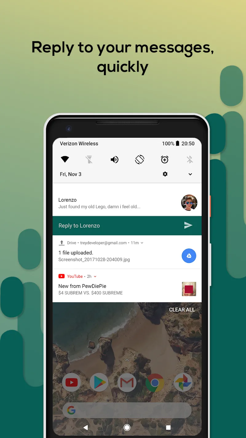 Material Notification Shade Premium Pick custom colors, choose your own profile icon, and adjust the grid size. Root access grants ability to directly toggle more system settings like mobile data and location services.ACCESSIBILITYThe app uses Accessibility Services to enable advanced features like gesture controls and integration with system notifications. No personal data is collected. Permissions provide the ability to trigger the shade when swiping down and retrieving window content for features like Quick Reply.BRING YOUR DEVICE TO LIFEWith robust theming and customization features, Material Notification Shade allows you to truly personalize your