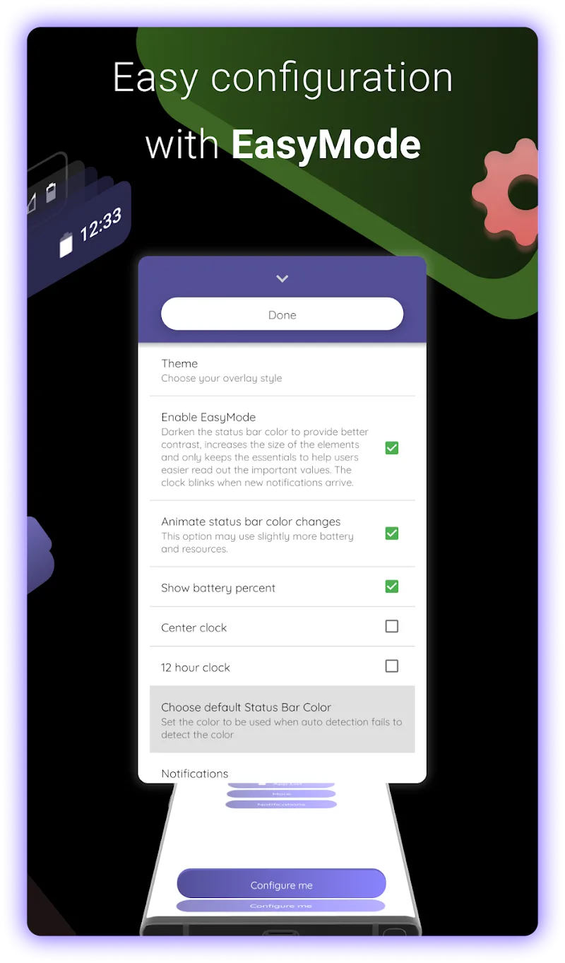 Material Status Bar Premium ion is suitable for many different users, so there will be no worries about usage problems because of the companionship of EasyMode to overcome difficulties when using it.Theme Customization: The application has 3 unique theme types for you to choose according to your needs.Custom Notifications: You can refresh the notification panel by choosing new colors, new themes to apply to create a difference.TABLET-READY DESIGNThis customized application is more special than other applications because it has an interface specifically designed for tablets. This makes the usage pro