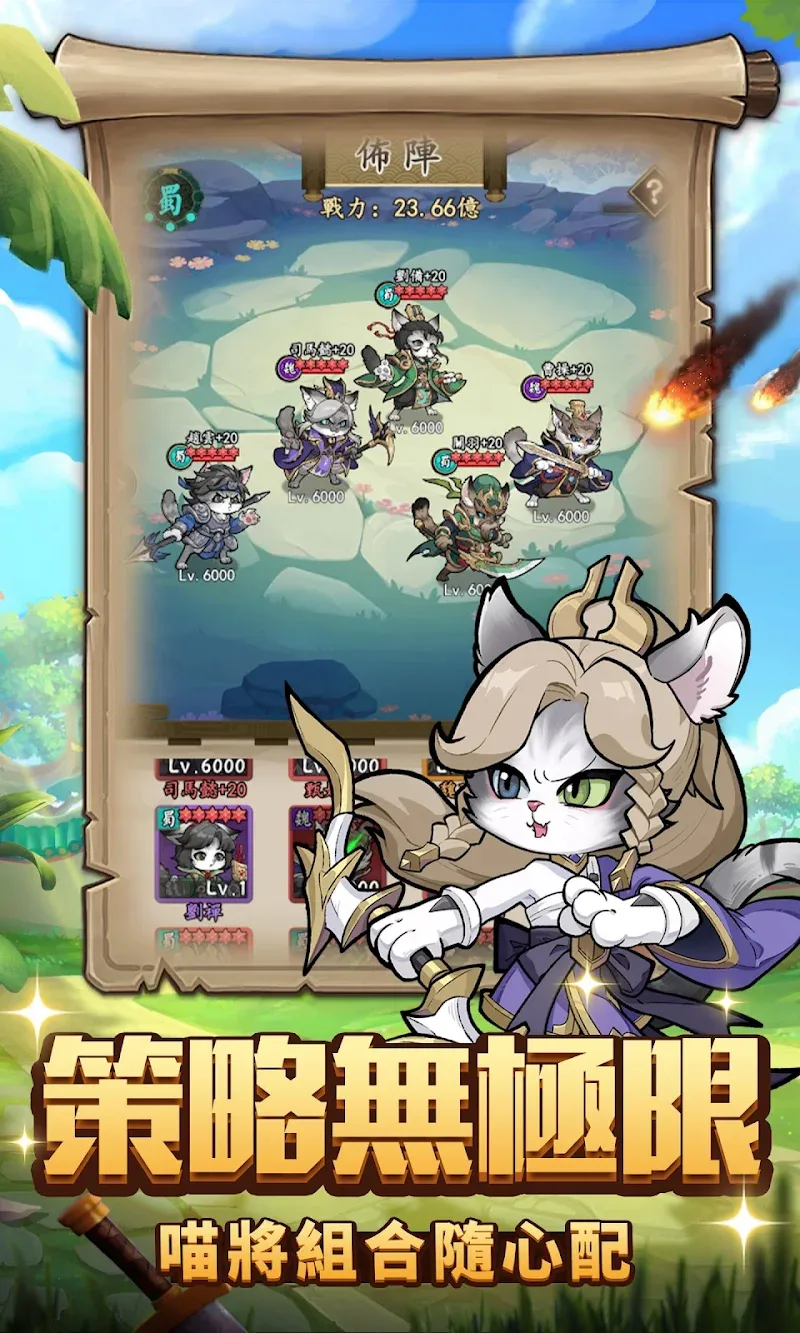 Have you ever searched for a card-style game that you can experience to make the most of your tactical strengths? Then 喵將三國-送999抽 will be one of the great choices that you should not miss for your game collection with the features it possesses. The game will bring heroic generals from the Three Kingdoms period, famous around the world, to be transformed into the image of extremely cute cats.BUDDHIST SITUATION & AFK FRAMEWORKThe fights will be controlled by the players. The field will be opened one by one. Players construct an effective warrior squad. They will be prepared to total the challenges of the amusement. All lowlifes are vanquished by cat warriors. The fun still begins when the