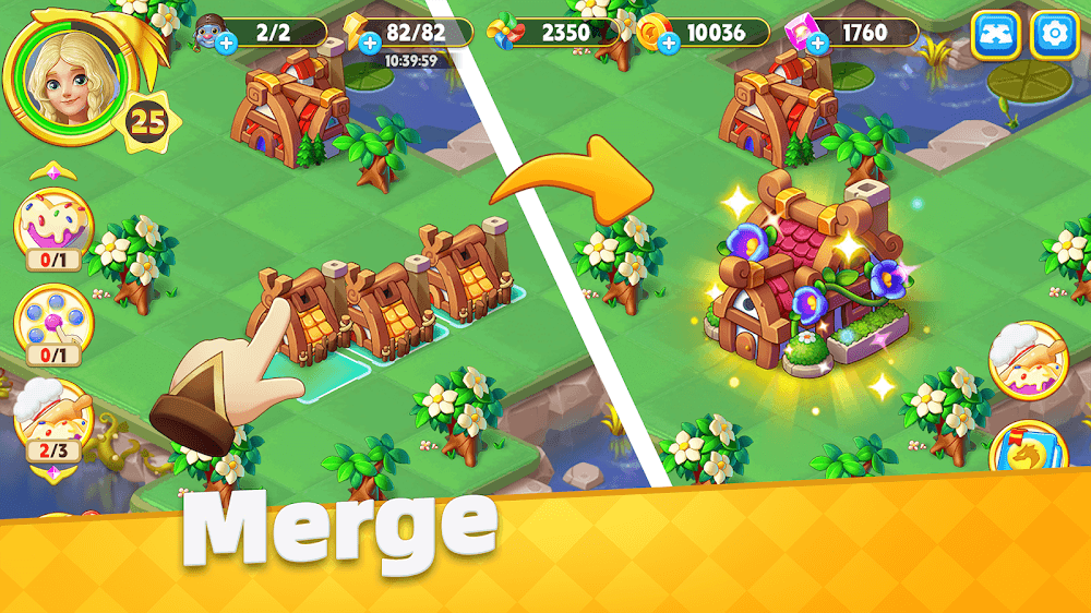 The magical world will be created by combining pieces and creating new items. Players of Merge Legends: Dragon Island will complete the merging task in turn to build the island. Similar items will be combined according to the rules. Players just need to swipe to interact with objects and perform tasks on the island.MAGICAL MERGING SYSTEMImportant items will be created by merging small pieces. Players can clean up the island by merging anything they see. Hundreds of items will appear scattered all over the island. Players just need to touch and swipe to move and arrange them carefully.Combine Identical Items: Items of the same